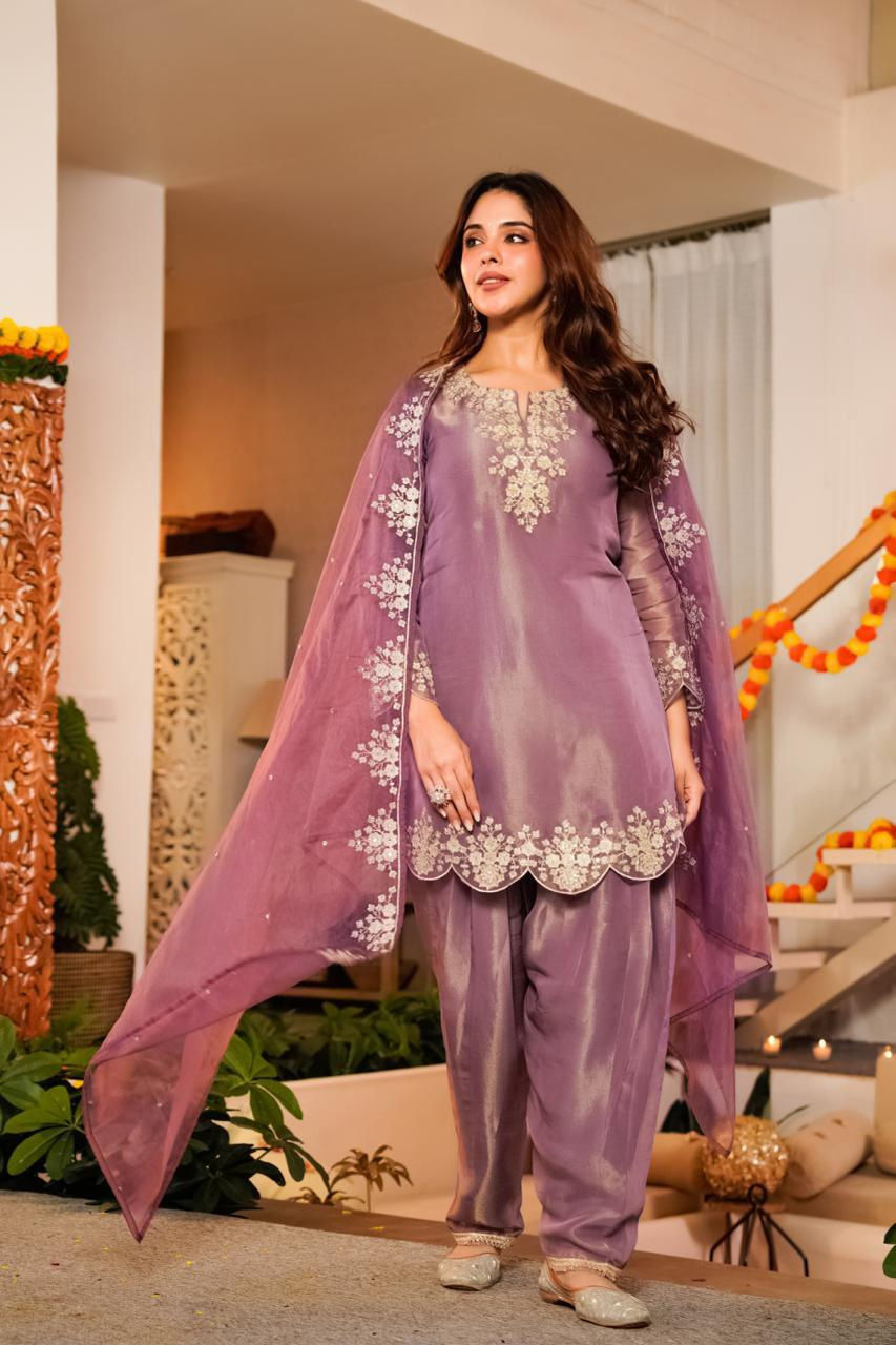 Regal Mauve Silk Salwar Suit with Scalloped Embroidery