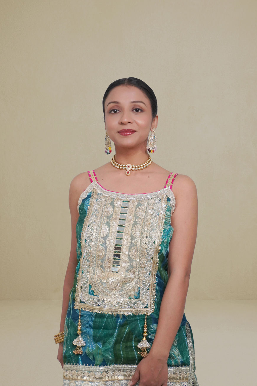 Emerald Oasis: Rajasthani Green Printed Kurta with Gota Patti Artistry
